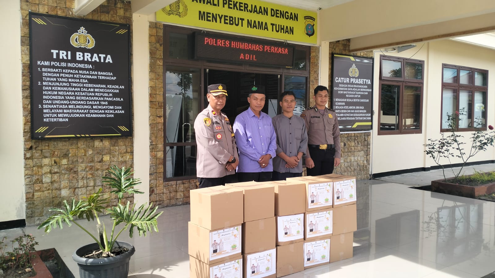 Pemberian paket lebaran berlangsung di Polres Humbang Hasundutan, Jumat (5/4/2024).